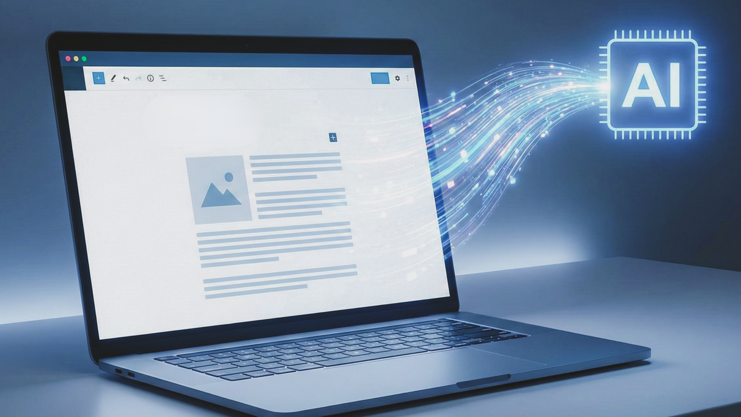 Caption: An open laptop with a blog on-screen, sharing AI resources.